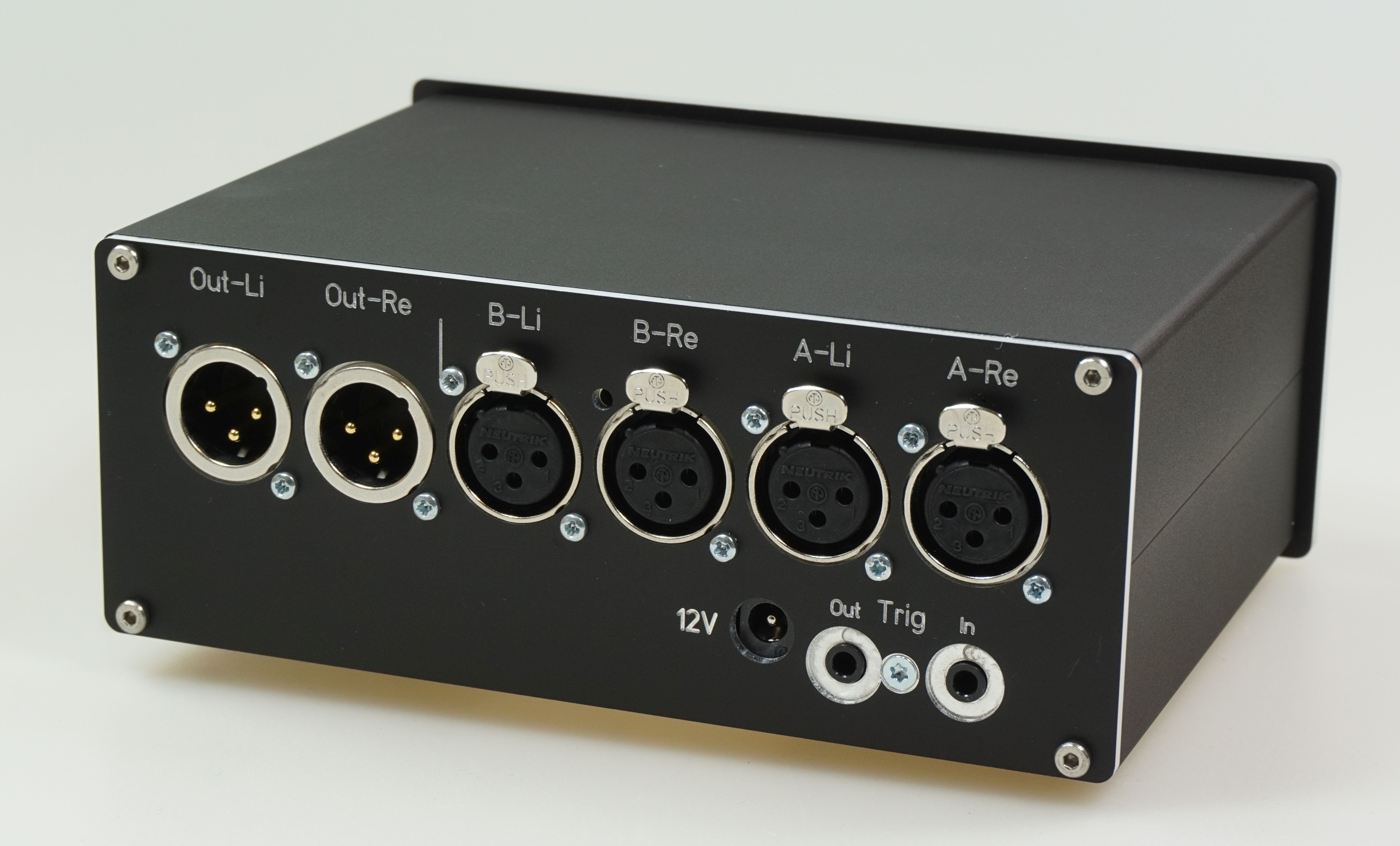 Hier eine Ausführung mit hochwertigen einzeln verschraubten Cinchbuchsen.